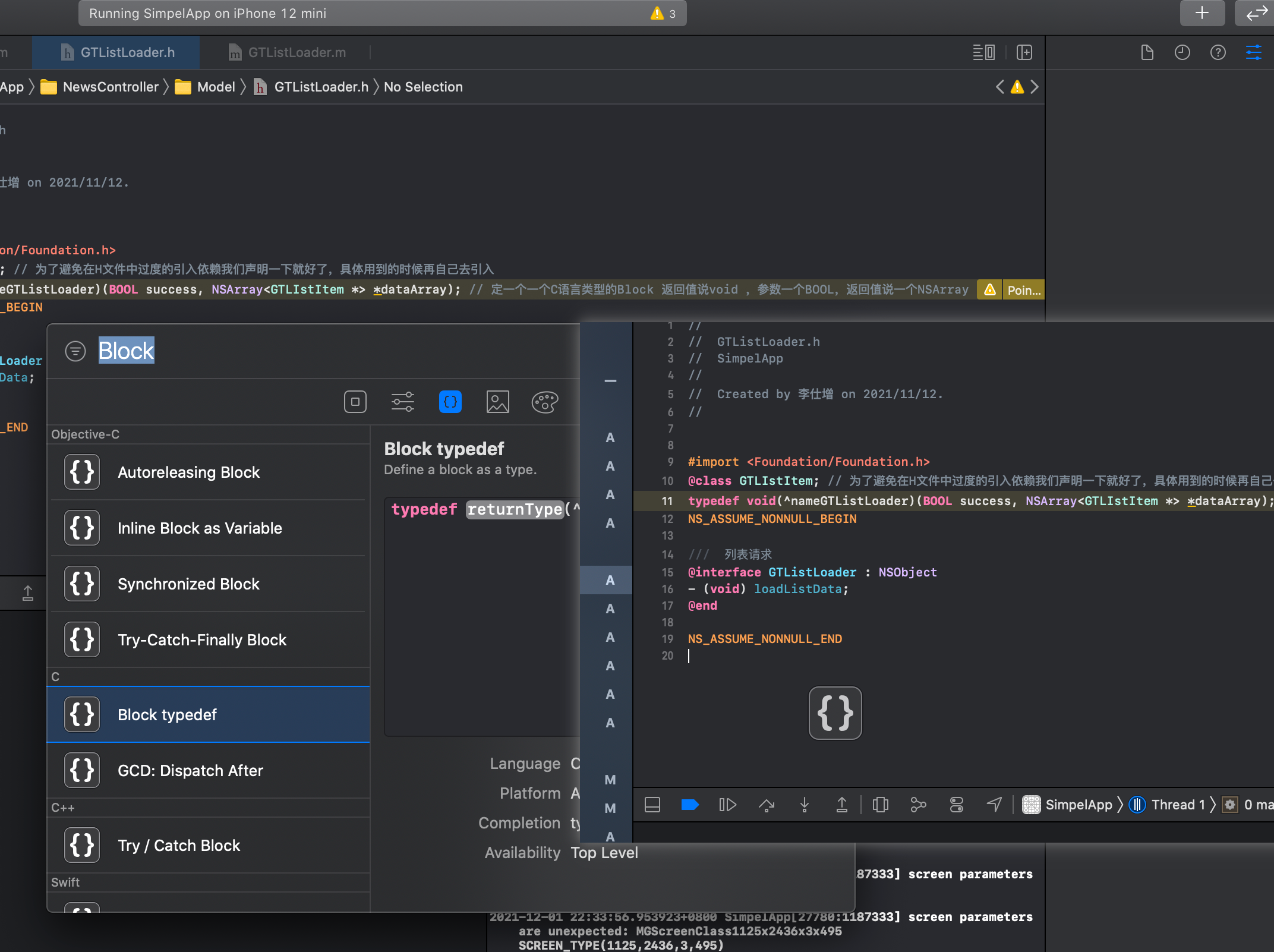 你可以使用快捷的Xcode操作,直接拖入一个Block快就好了