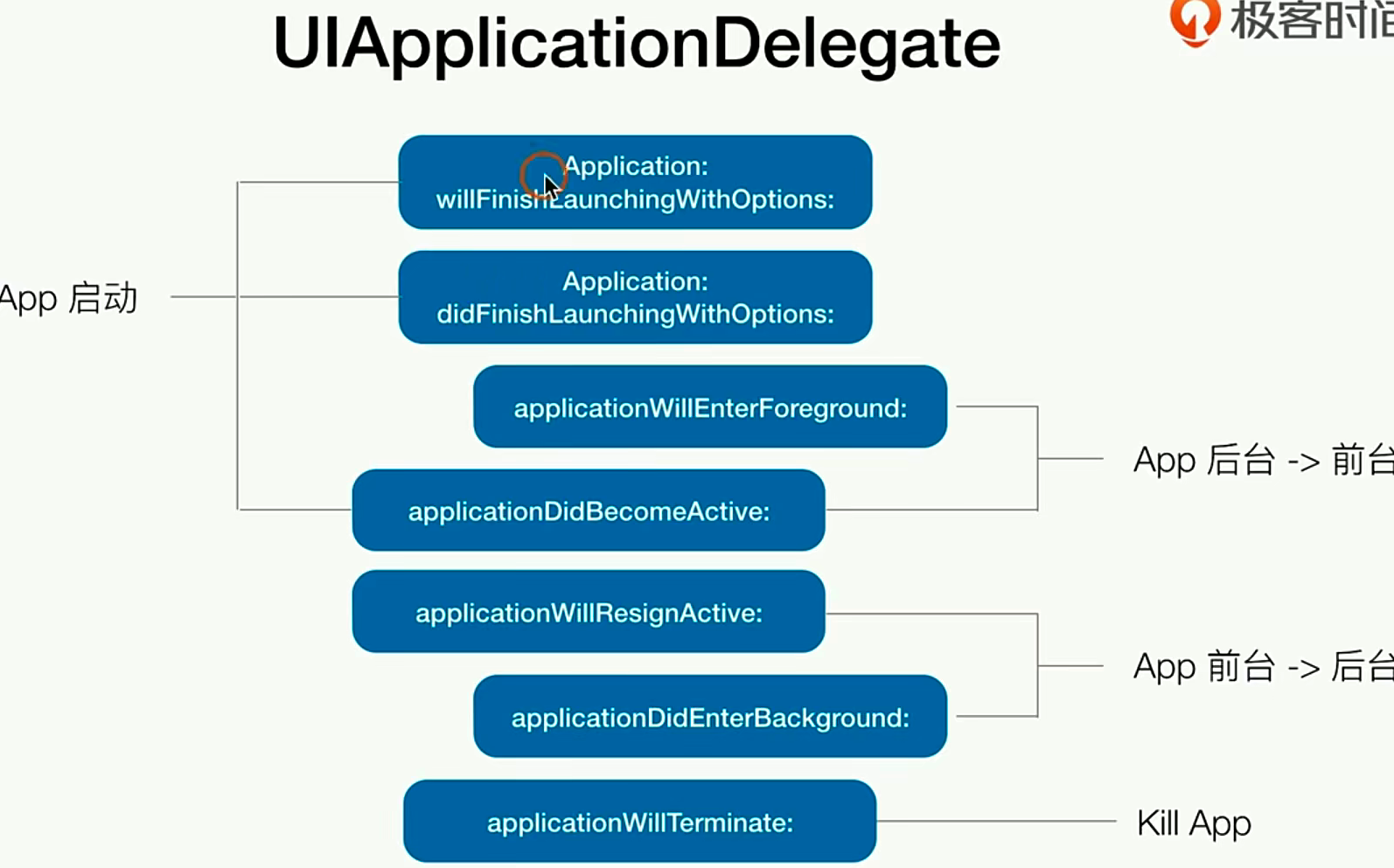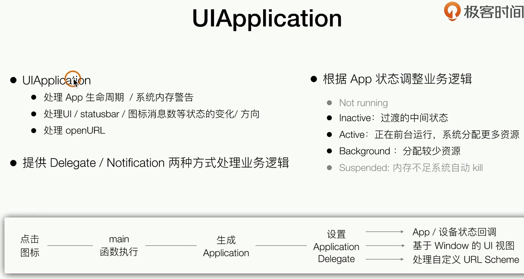 实际上 就拿到 UIAplication这个对象,它具备下面的功能👇,App的启动流程也在下面给出了,对于RN来说中间还需要加一层yogo和jscore线程 ,我们现在的启动优化 也是可以在这个流程中去做