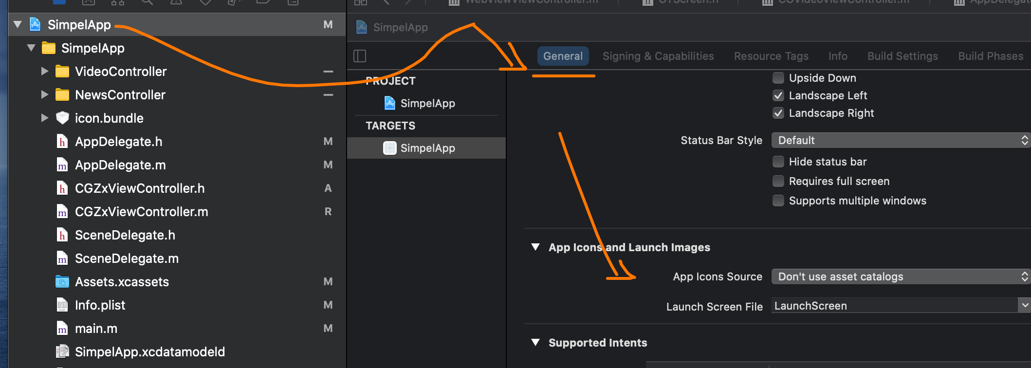 1.首先我们去到info.plist,删掉如下图箭头所示