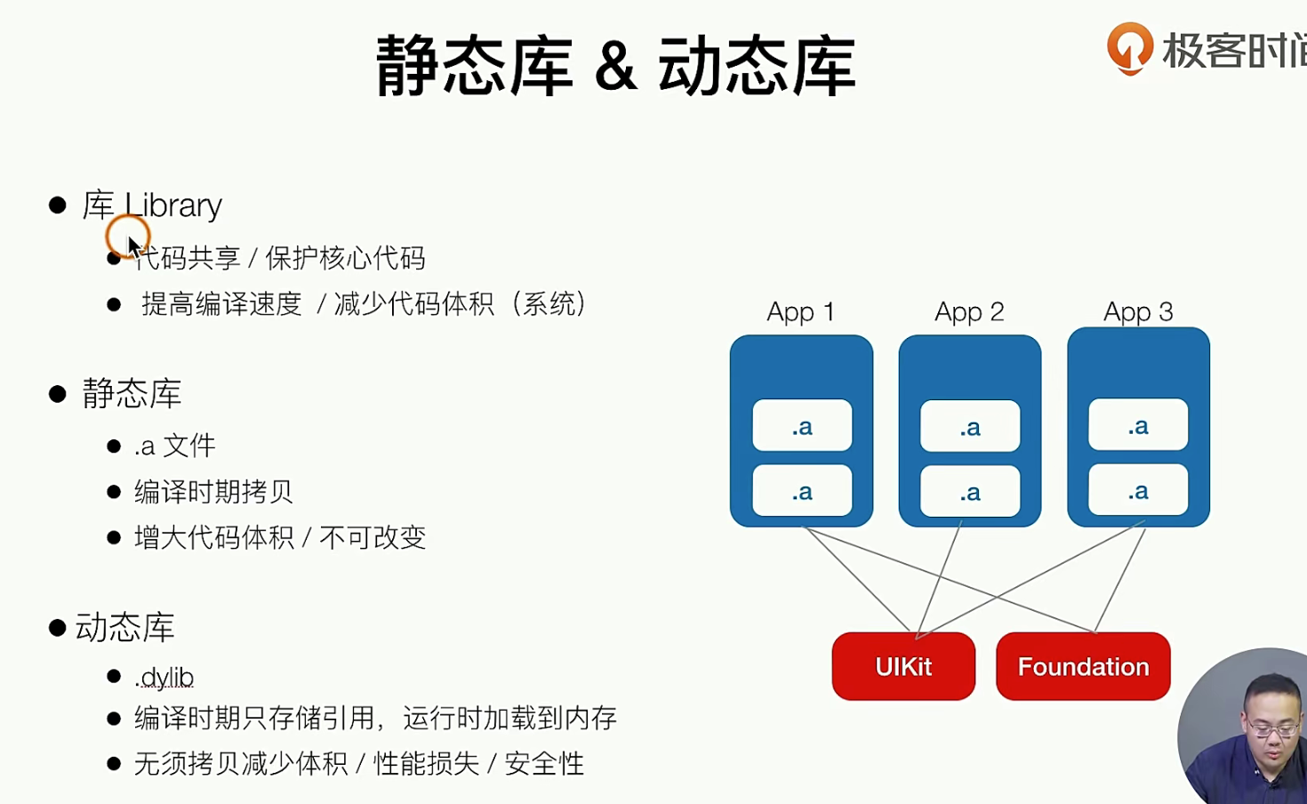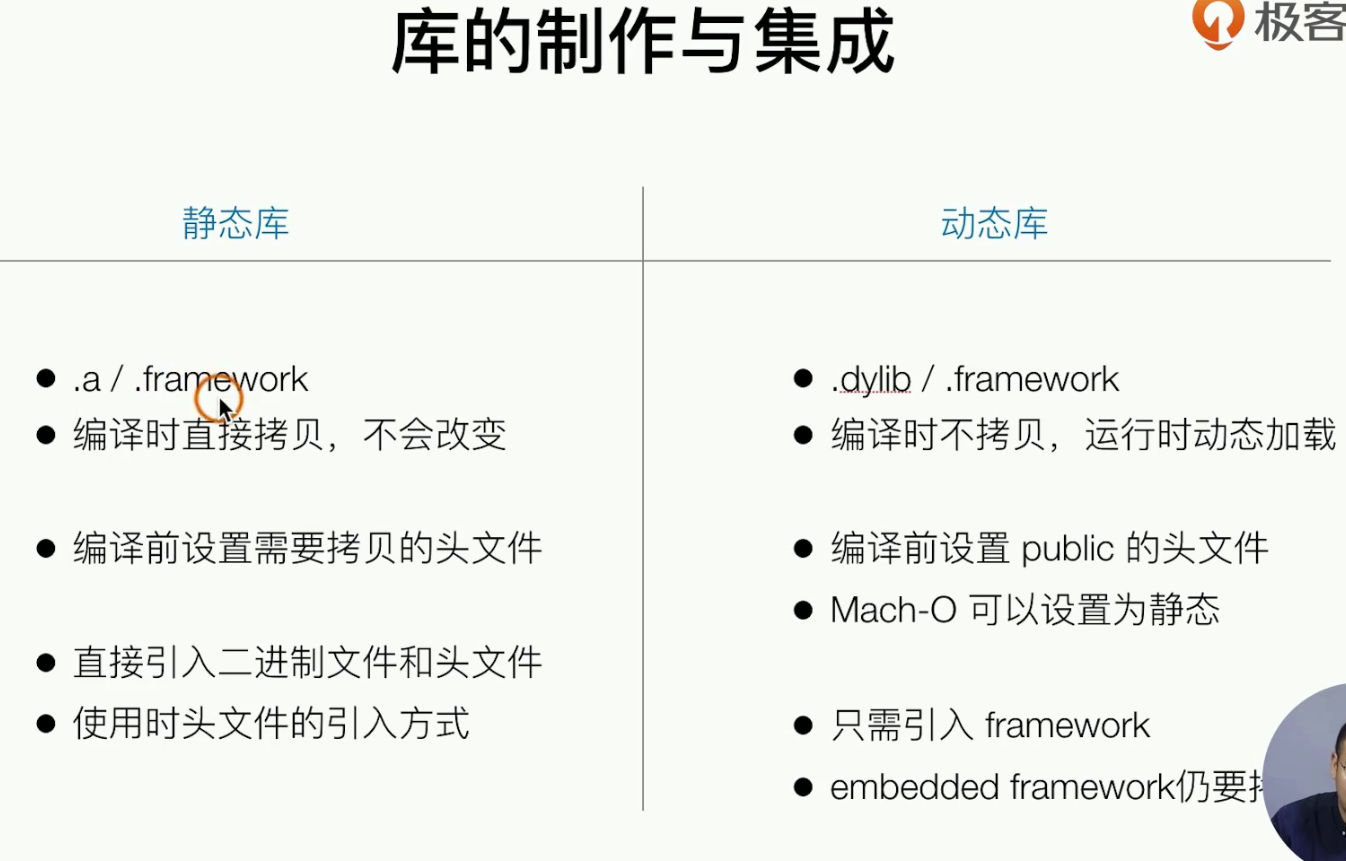 有时候我们使用别人的东西,别人不回给你源代码,别人给你的 编译好的东西,在IOS中这就是 库 ,然后IOS中还做了分类j 静态/动态 ,静态的问题上面也说了,编译的时候要把好多东西cv进编译执行/ 是噎一个静态库,动态库就是 runtime的,动态库 是有风险的,包括审核什么的,但是开发的时候 我们为了安全是不回使用动态库的,我们直接就是静态库打包到app中,但是系统的UIKit就是静态库,可以做一部分的优化。