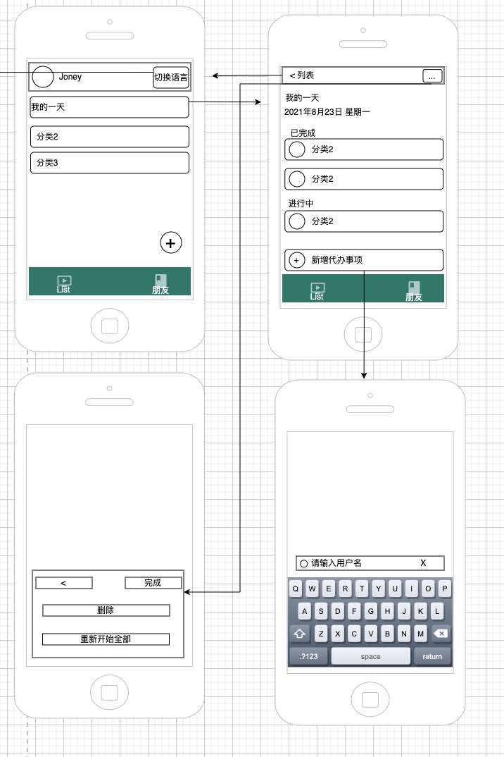 1. 点击份Todo分类进入子类 2. 点击新增挑起键盘输入点击保存可以添加一个 todo 默认放在 正在进行中 3. 点击checkbox,标记todo已经完成,放入已完成列表中 4. 支持给整个父类设置重新开始 全部todo 5. 支持删除整个分类 ,同时也删除子类 |