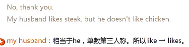but 但是 doesn't . -> 单数第三人称 ![]() |