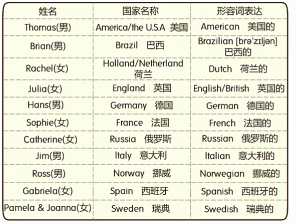 Where do you come from?/Where are you from ? / What nationality are you ? I come from .../ I am from ..../ I am .... ( chinese ) 这是 一个最简单的句型 // 关于 三单的表达 Where dose she come from? Where is she from? Where nationality is she? // 如果是复数的情况 比如它们来自那里 Where do the new studens come from?注意do Where are they from? Where nationality are they? // 一定要注意! 主谓 搭配要一致 关于否定 Dose she come from Englang? no ,she don't come form England 下面是一些练习 ![]() ![]() 第三人称单数! |
