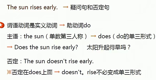 练习⚠️ 三单! 和助动车 Does!,我们的胃语是 实意动词,所以我们 需要使用do 和does |