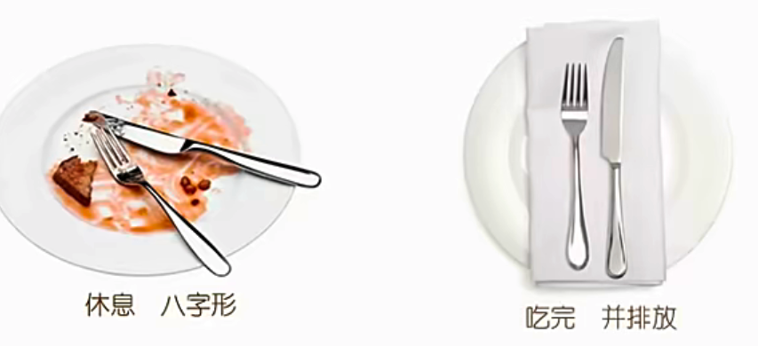 fork 叉子 一般来说,左手拿叉子,右手拿刀 这个是 西餐的吃法