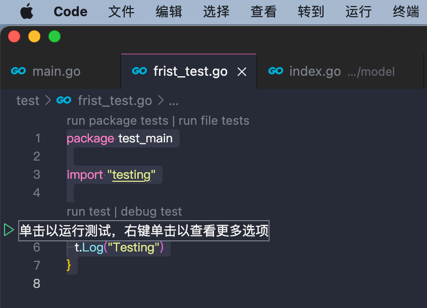 如果你 使用vscode 那么很方便,点一就好了,如果没有也不要慌 使用 shell go cli 去执行