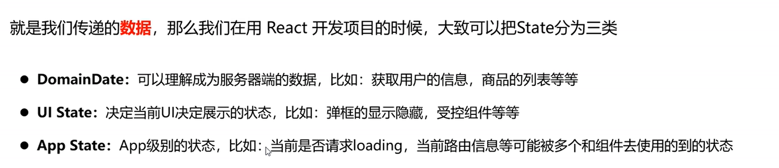这个就是我们传入的数据,我们在做react的时候,大概可以分三类state