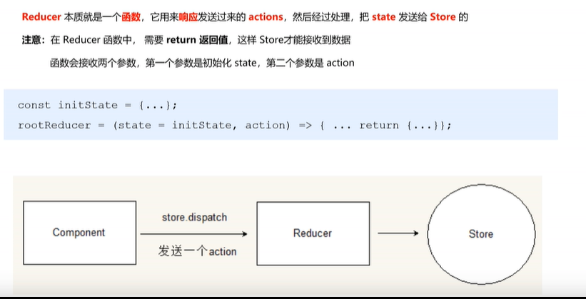 这个东西也算是一个函数,响应传递过来的actions,然后处理它,最终把处理好的state发送会store