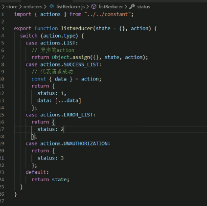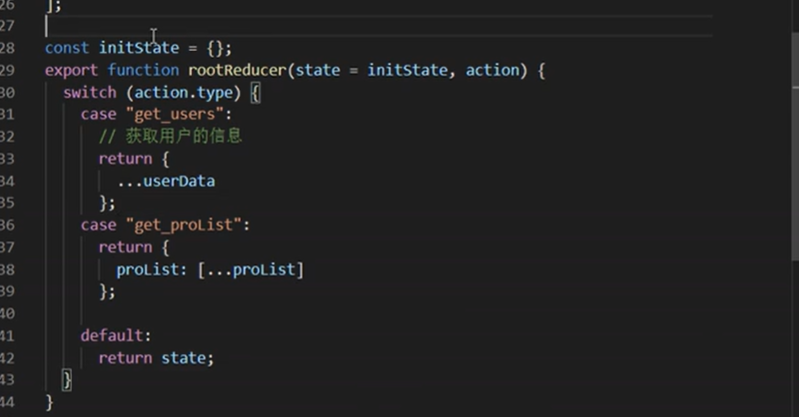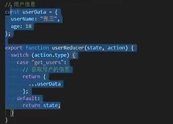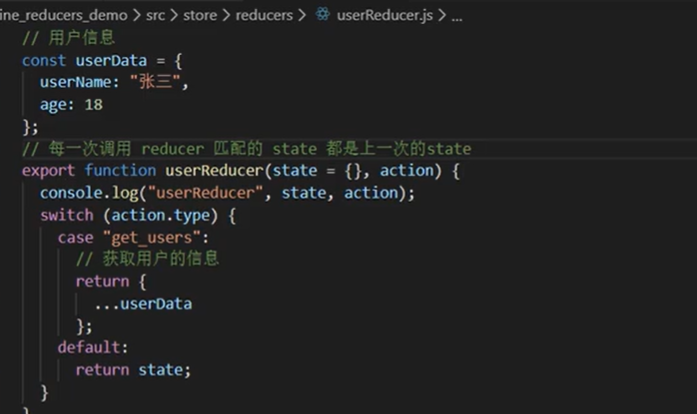 我们定义了一些数据,在一个reducer里的代码