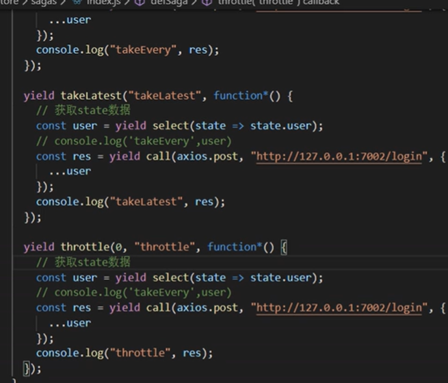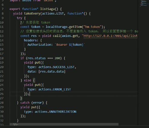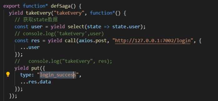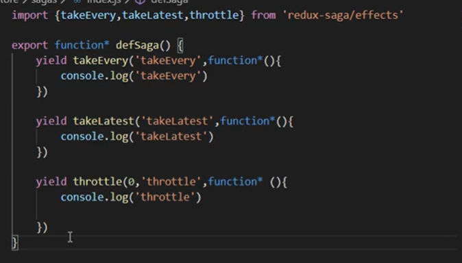 在我们的store/sage/index.js中进行监听,注意啊这里的es6的新特点  yield函数