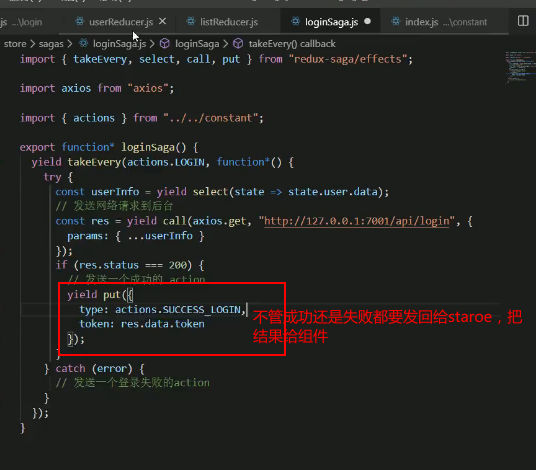 • 登录的saga 处理逻辑