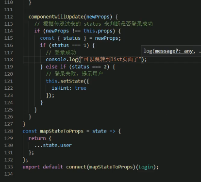 我们的map把redux中的store进行映射到了当前组件的props上,如果有请求就说明prop变了,那么我们就需要在组件的内部进行一定更新处理
