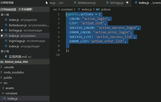 初始化项目准备action, reducer,分模块的saga